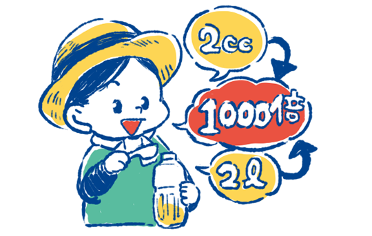 | 2Lのペットボトルに液体肥料を2cc、水を入れれば1000倍になります。 |