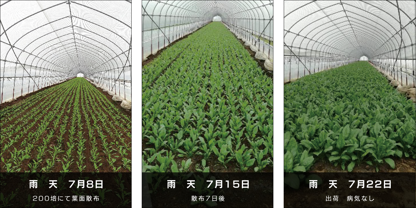 昨年の枯れた根・葉・茎をはじめ土中の有機物を早期に分解、土を軟らかく肥料の吸収を良くし病害に強い土壌にします。